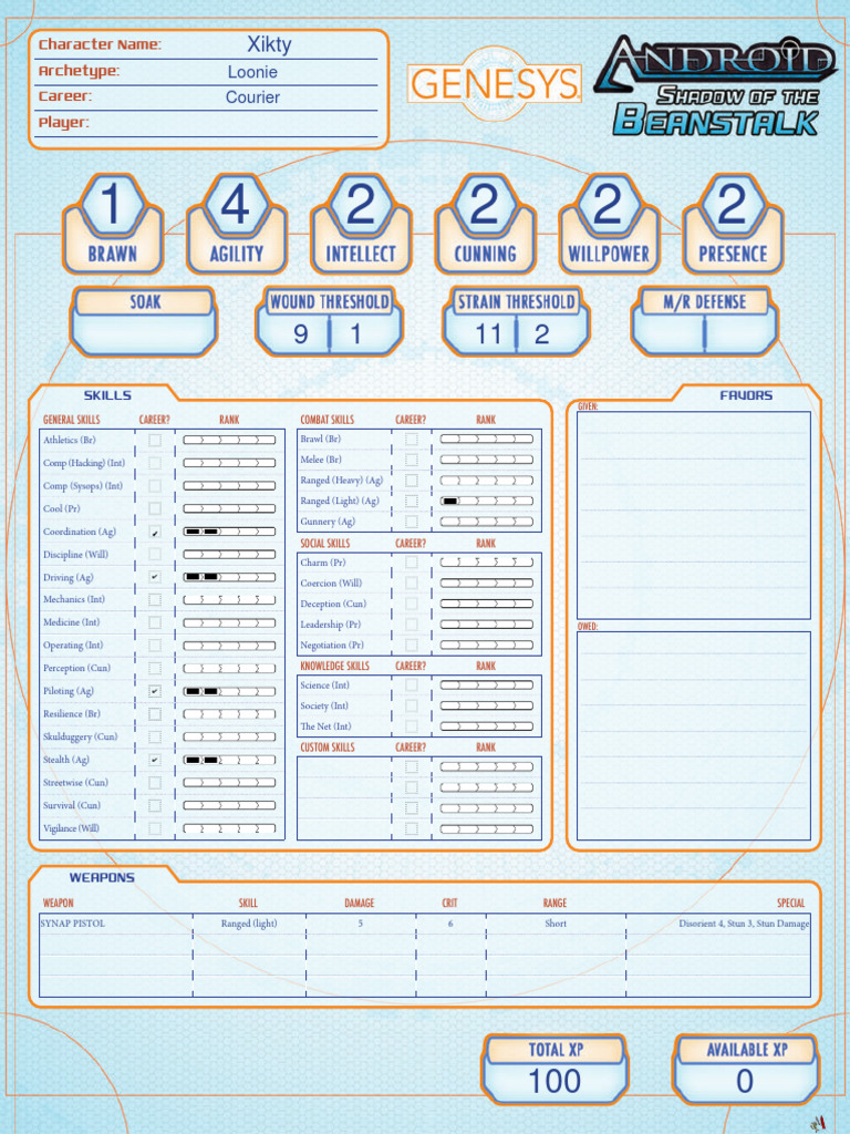 Genesys Beanstalk Fillable Character Sheet XIkty PDF