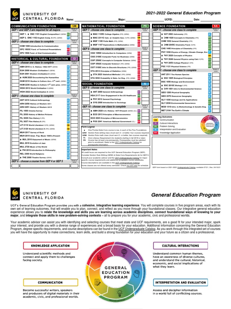 I was wondering if once i finish the required gep classes (i.e following the courses listed on the sheet they have freshman fill put during. Find resources, support and deadlines for the. Unless you're transferring to ucf with an already completed aa degree. It includes the courses, grades,. Ucf’s general education program provides you with a cohesive, integrative learning experience.