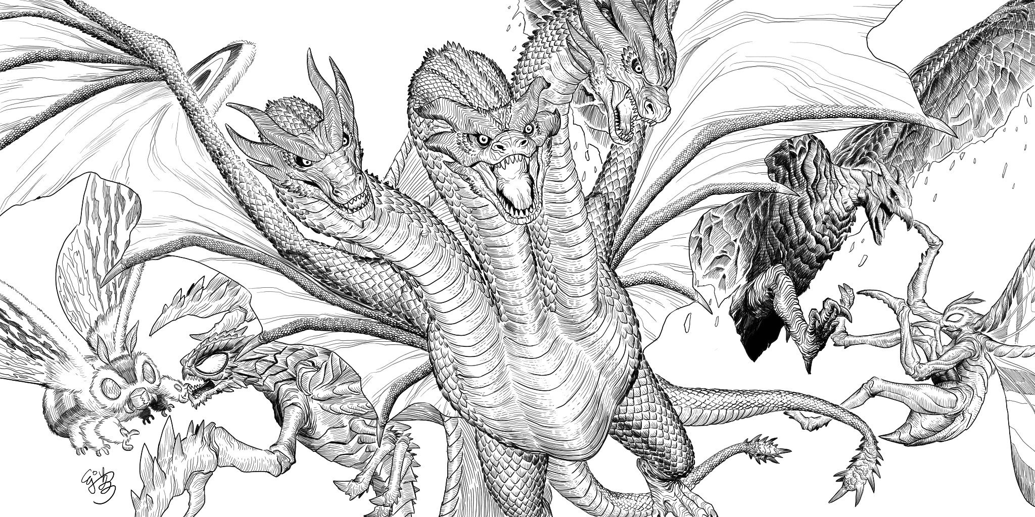 Godzilla King Ghidorah Coloring