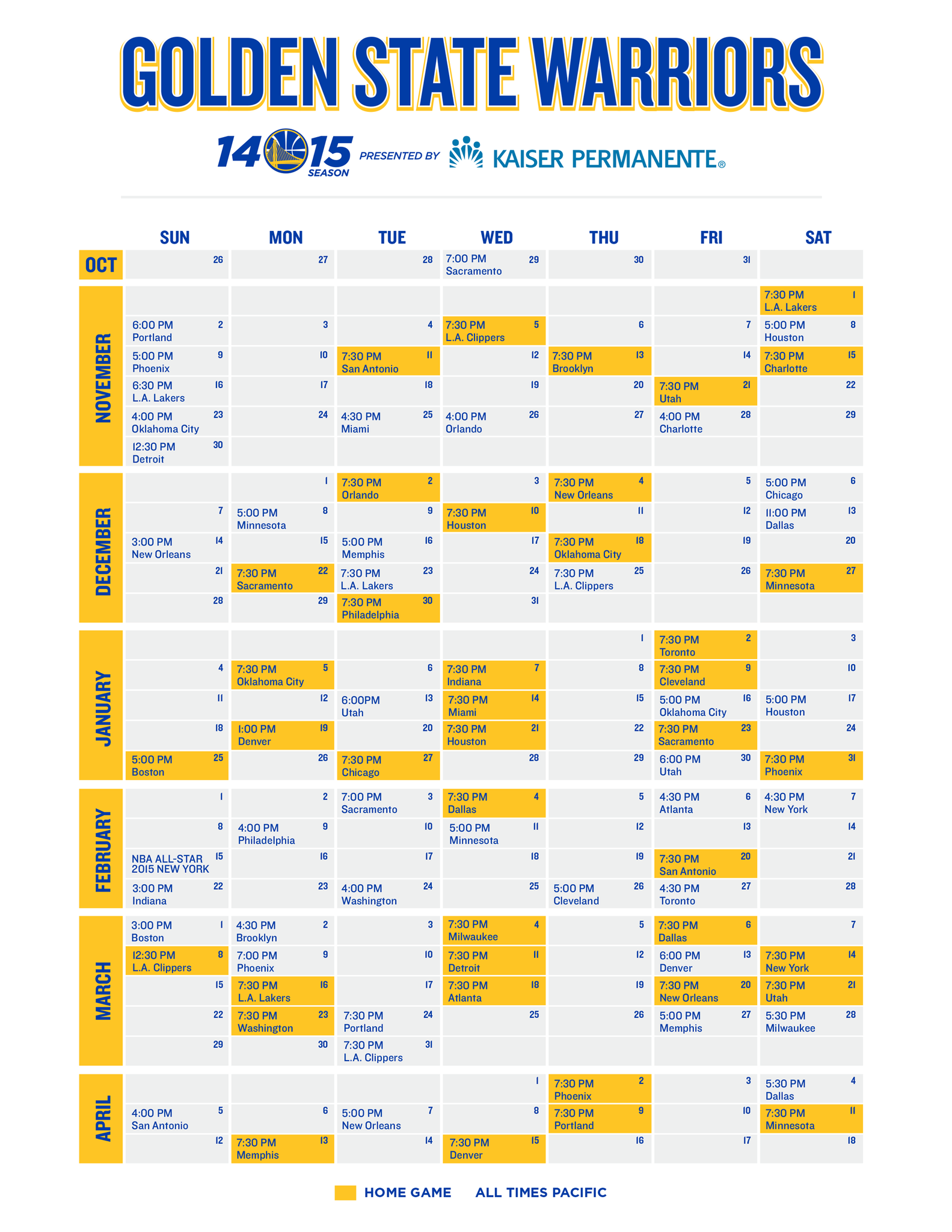 Schedule to be determined based on the results of the cup games group nbcsba play. Check the golden state warriors' schedule on nba.com. Includes game times, tv listings and ticket information. For ticket information or accessible seating.
