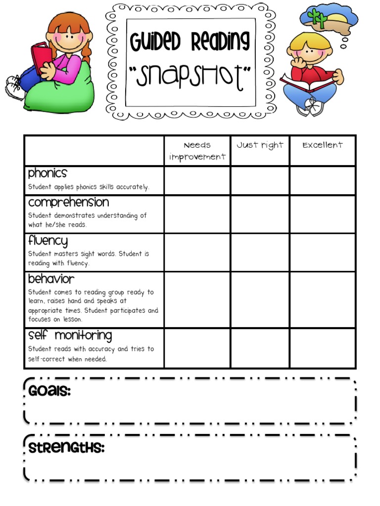 Guided Reading Assessment Form Stinson Phonics Reading Comprehension