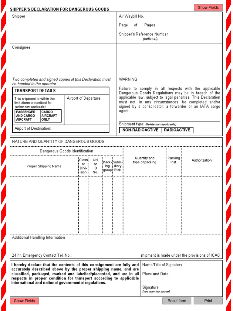 Shippers Declaration For Dangerous Goods DHHR Dangerous goods, Air
