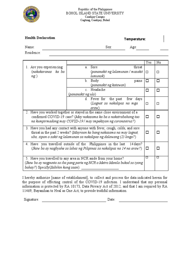 Health Declaration Form PDF Symptoms And Signs Respiratory Diseases