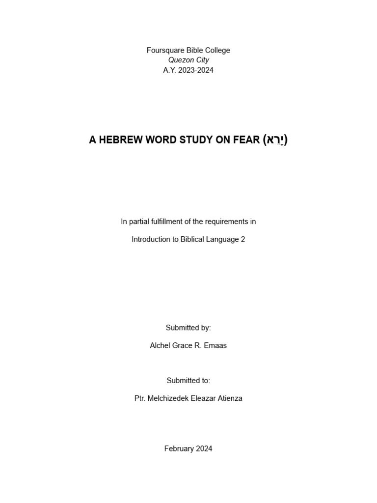 Hebrew Word Study On FEAR PDF English Standard Version David