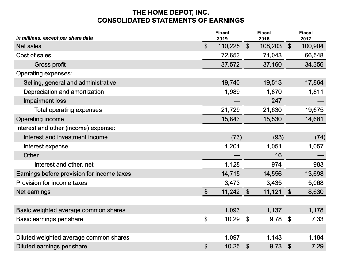 Solved HOME DEPOT Balance Sheet \begin{tabular}{lrrr} \hline