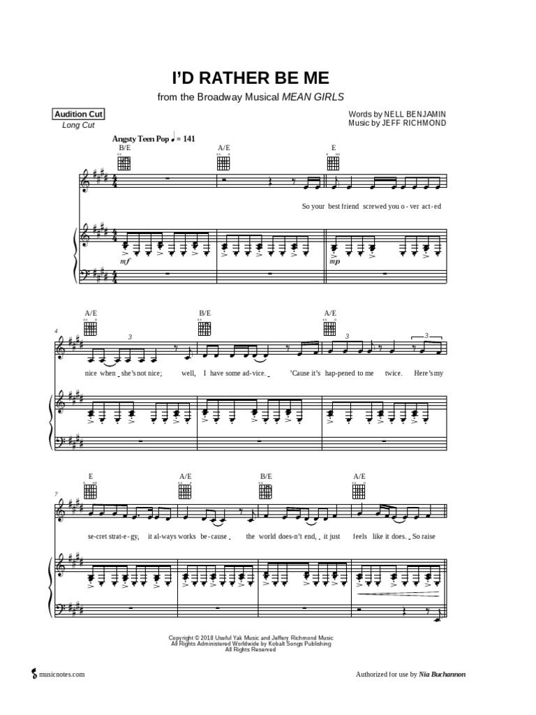 Browse our 6 arrangements of i'd rather be me. sheet music is available for piano, voice, guitar and 1 others with 5 scorings and 1 notation in 6. The broadway musical) sheet music by nell benjamin as a digital notation file for piano/keyboard and. Get i'd rather be me (from mean girls: