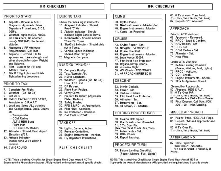 IFR Checklist Instrument Flight Rules Air Traffic Control