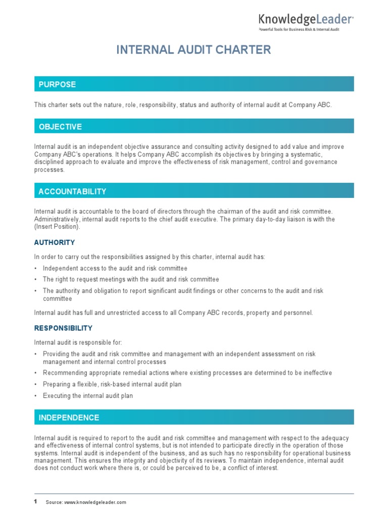 The purpose of this charter is to establish the internal audit position within [insert your. Internal audit charter is the best way to agree and describe how internal audit will provide value to. Starting the internal audit activity: Here you can download documents and templates. The internal audit charter should be approved by the governing body and agreed to by.