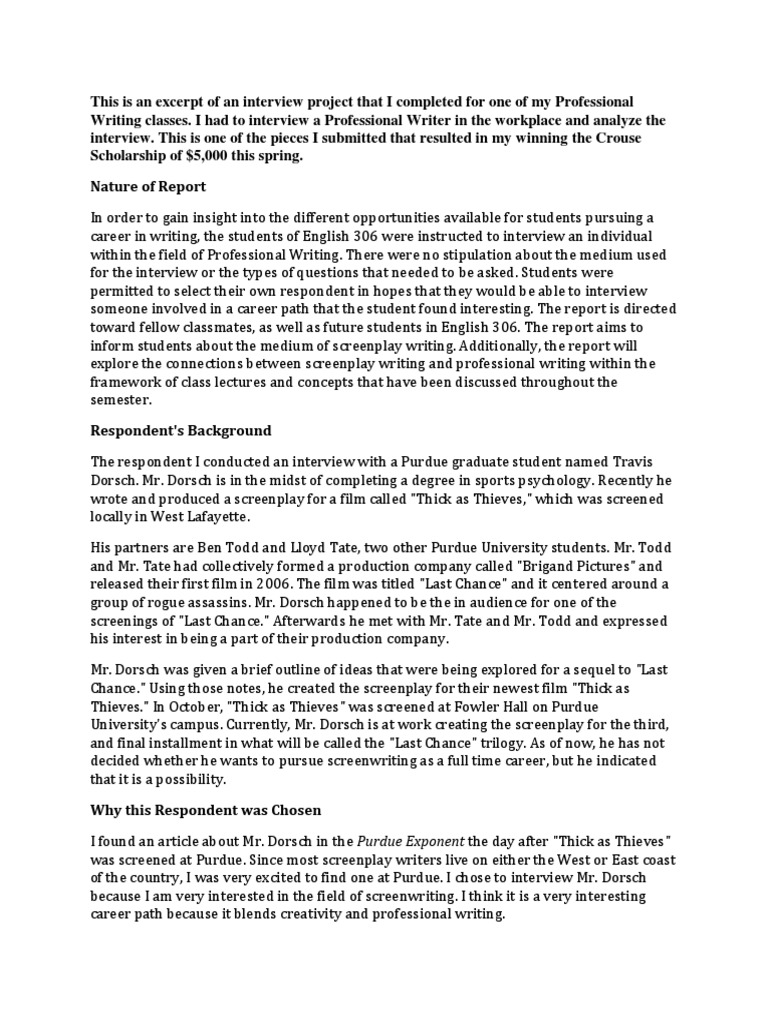 Interview Report Example PDF Interview Graduate School