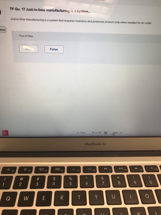 Solved TF Qu. 17 Justintime manufacturing is a system.