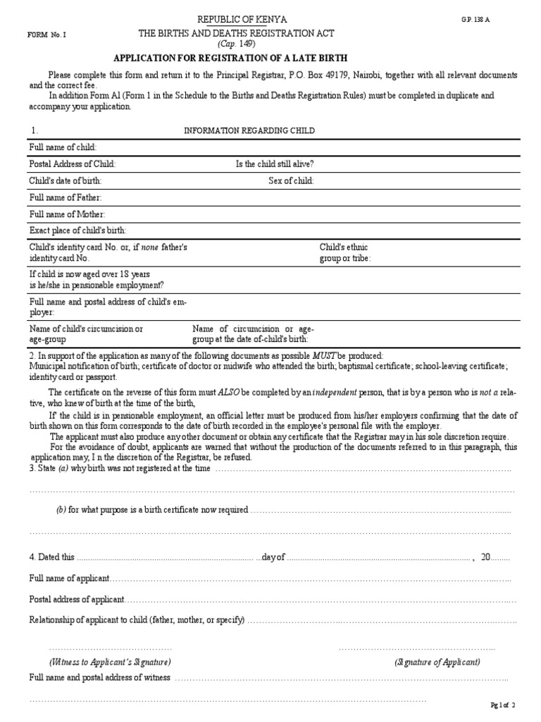Kenya Birth ApplicationBirthCertificate FormB4 PDF PDF Government