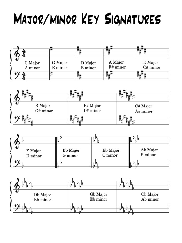 KEY SIGNATURE Cheat Sheet, Printable Major and Minor Key Signatures