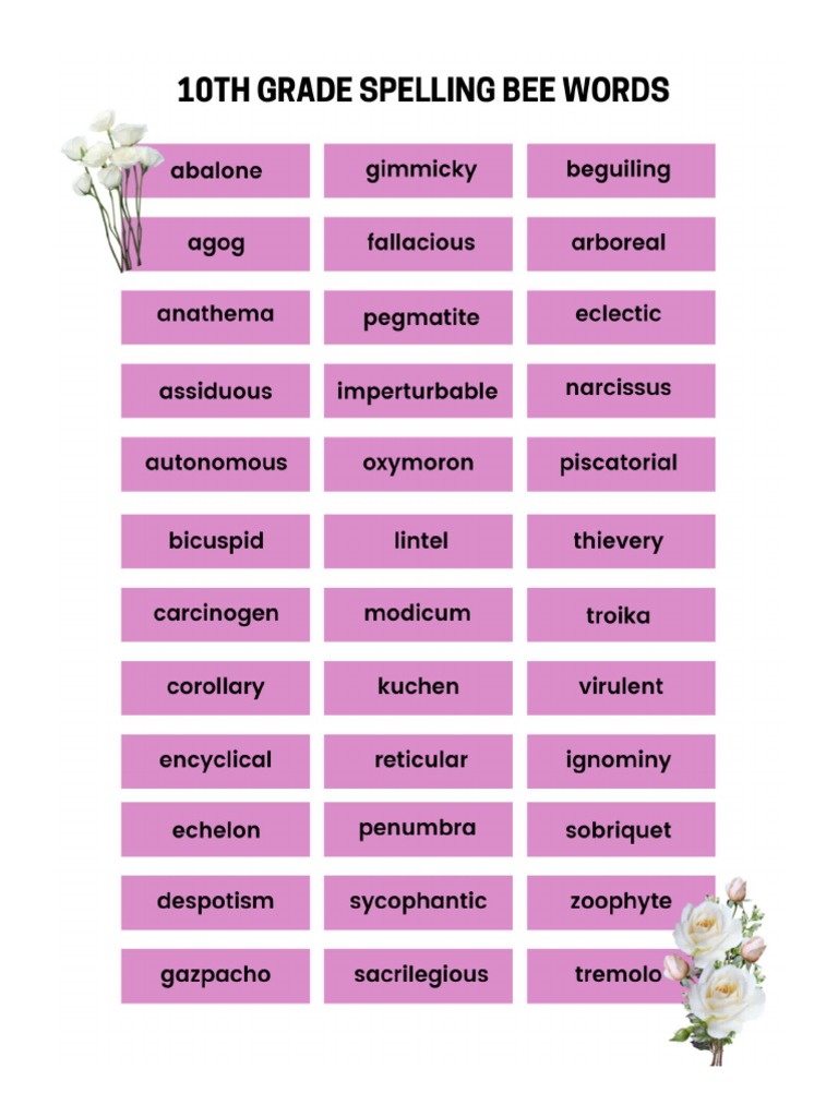 Spelling Bee Word List worksheet Spelling bee words, Spelling bee