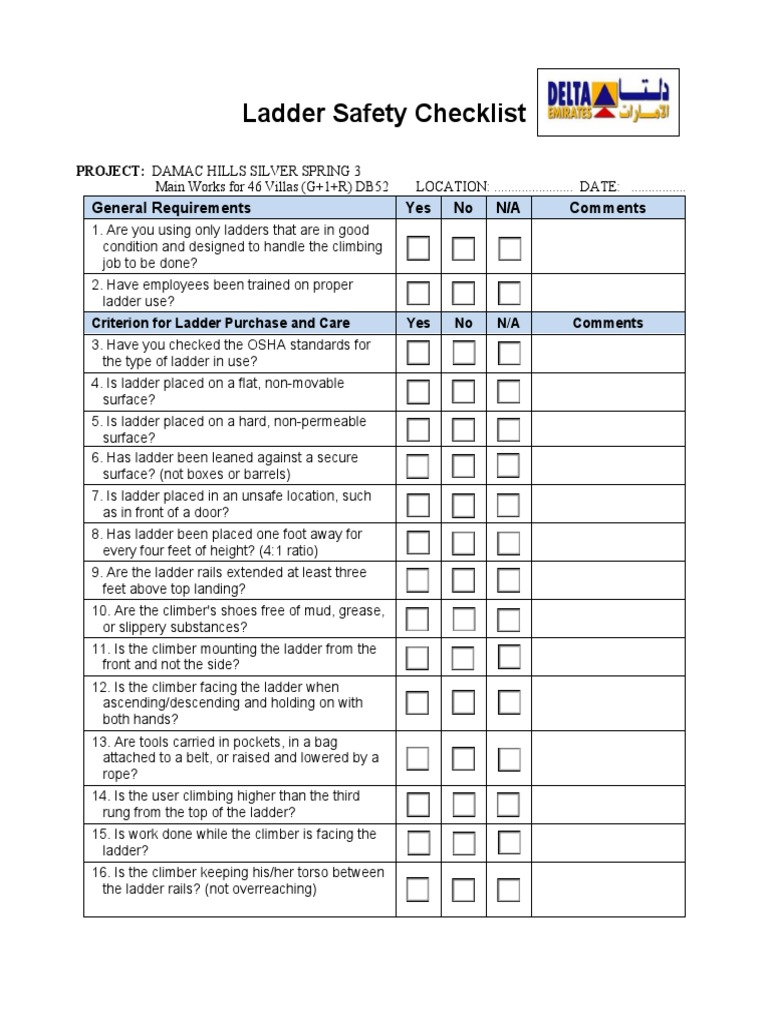 Ladder Safety Program Template - This written “ladder safety program” describes methods and practices for care and use of. Ladders are an essential part of production and maintenance within this facility. Ensure step stools are easily. Include guidance on conducting ladder inspections in your written program. Ensure all ladders are properly stored in designated areas; The purpose of this program is to establish the minimum requirements for the proper selection,.