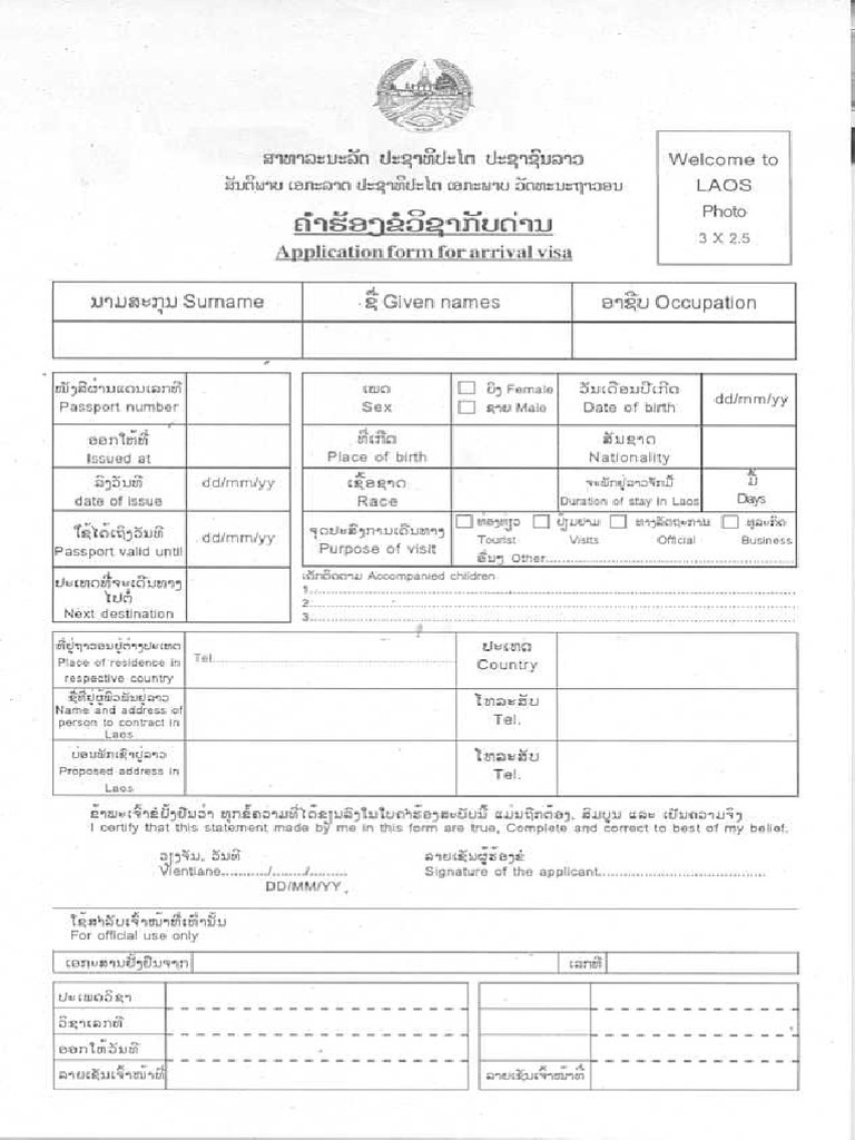 Laos Visa Application Form - Find and download the right visa form for your trip to lao, whether for tourist or business. Lao evisa or lao visa online is an electronic travel authorization to enter laos for tourism. Tourist evisa, up to 30 days in laos.