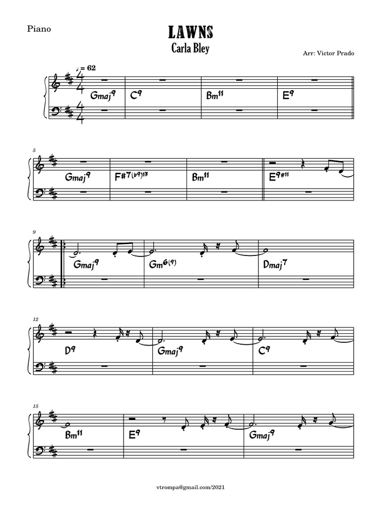 Share, download and print free sheet music of lawns carla bley for piano, guitar, flute and.