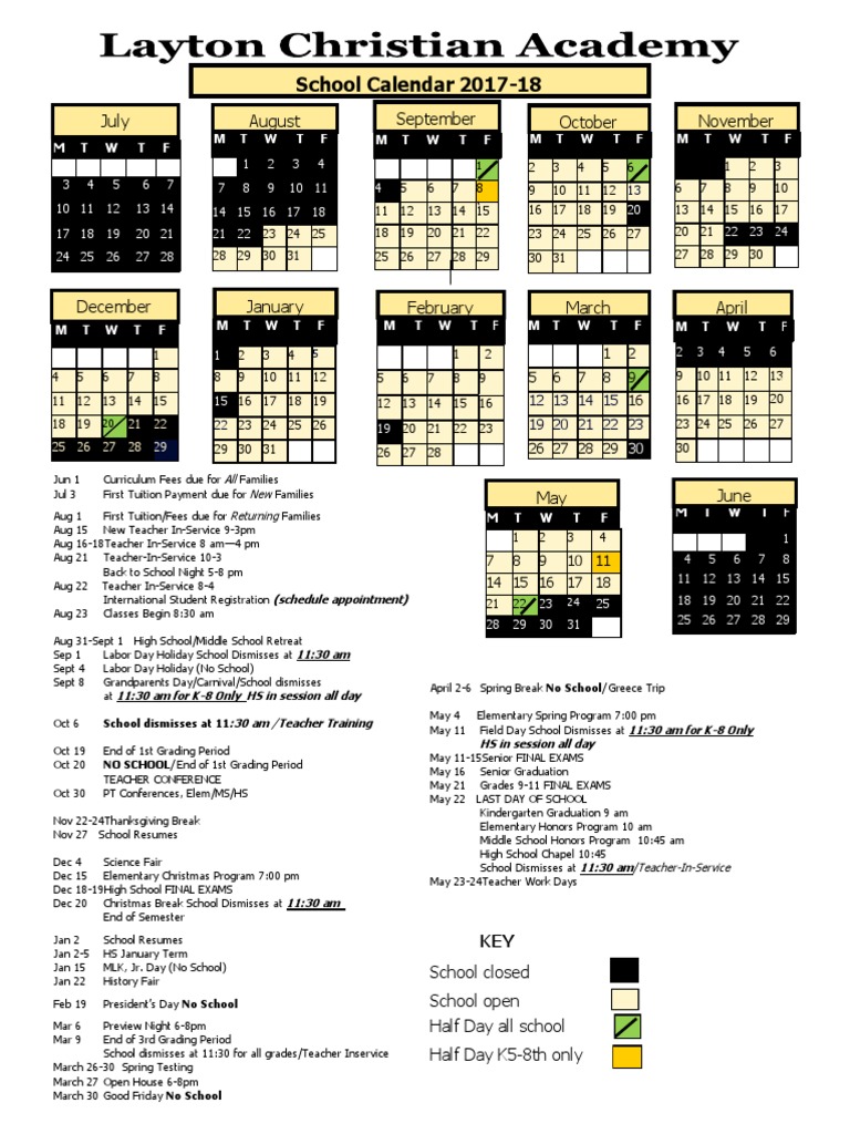 Layton Christian Academy Calendar