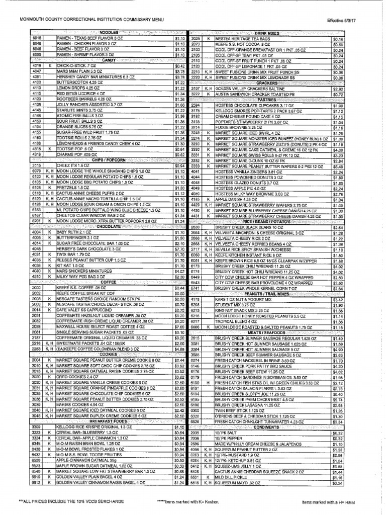 Jail Commissary Prices