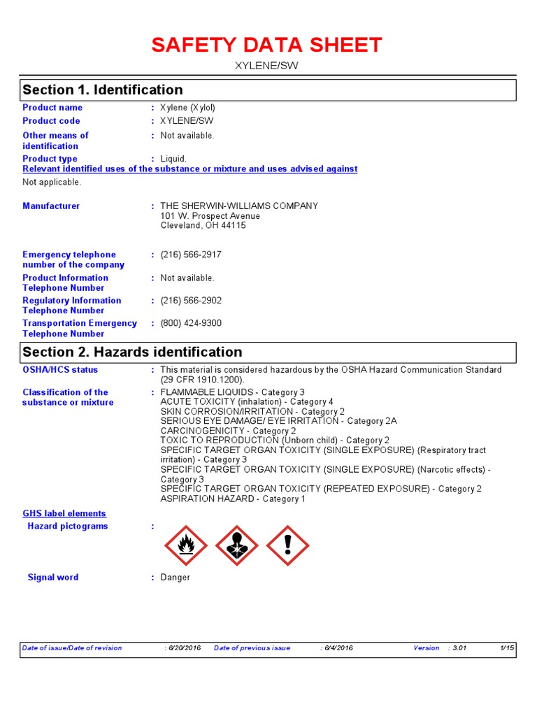 Material Safety Data Sheet Xylene at Ellen Martinez blog