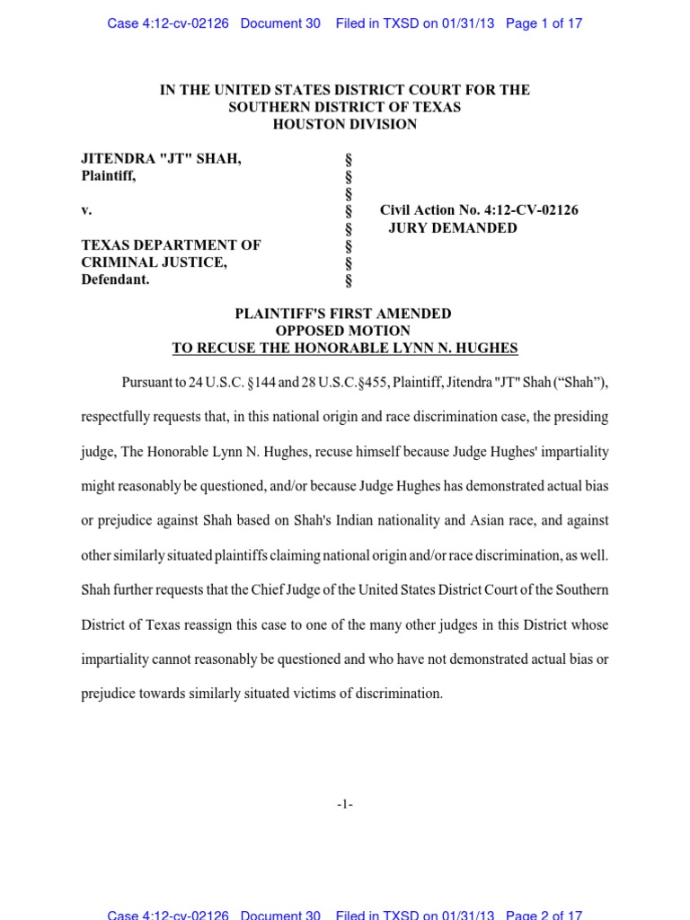 Motion to Recuse Judge Lynn Hughes Judicial Disqualification Civil