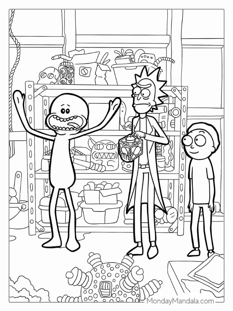Rick Morty and Mr. Meeseeks Coloring Sheet PDF
