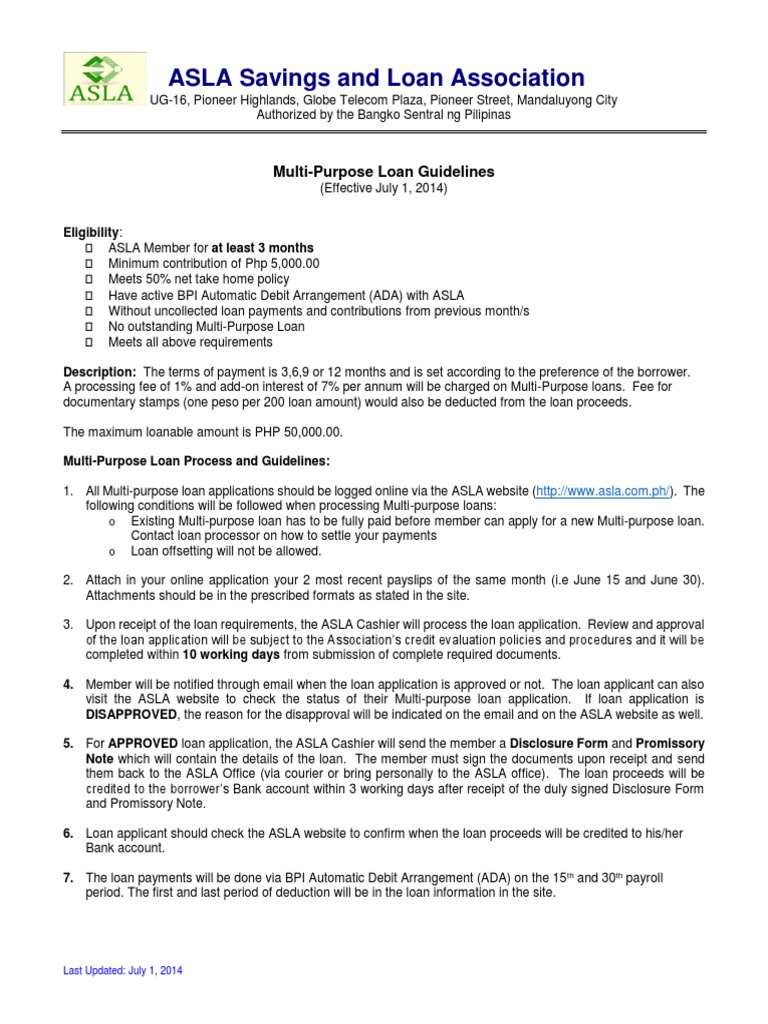 Multi Purpose Loan Guidelines Effective 20140701 Loans Payments