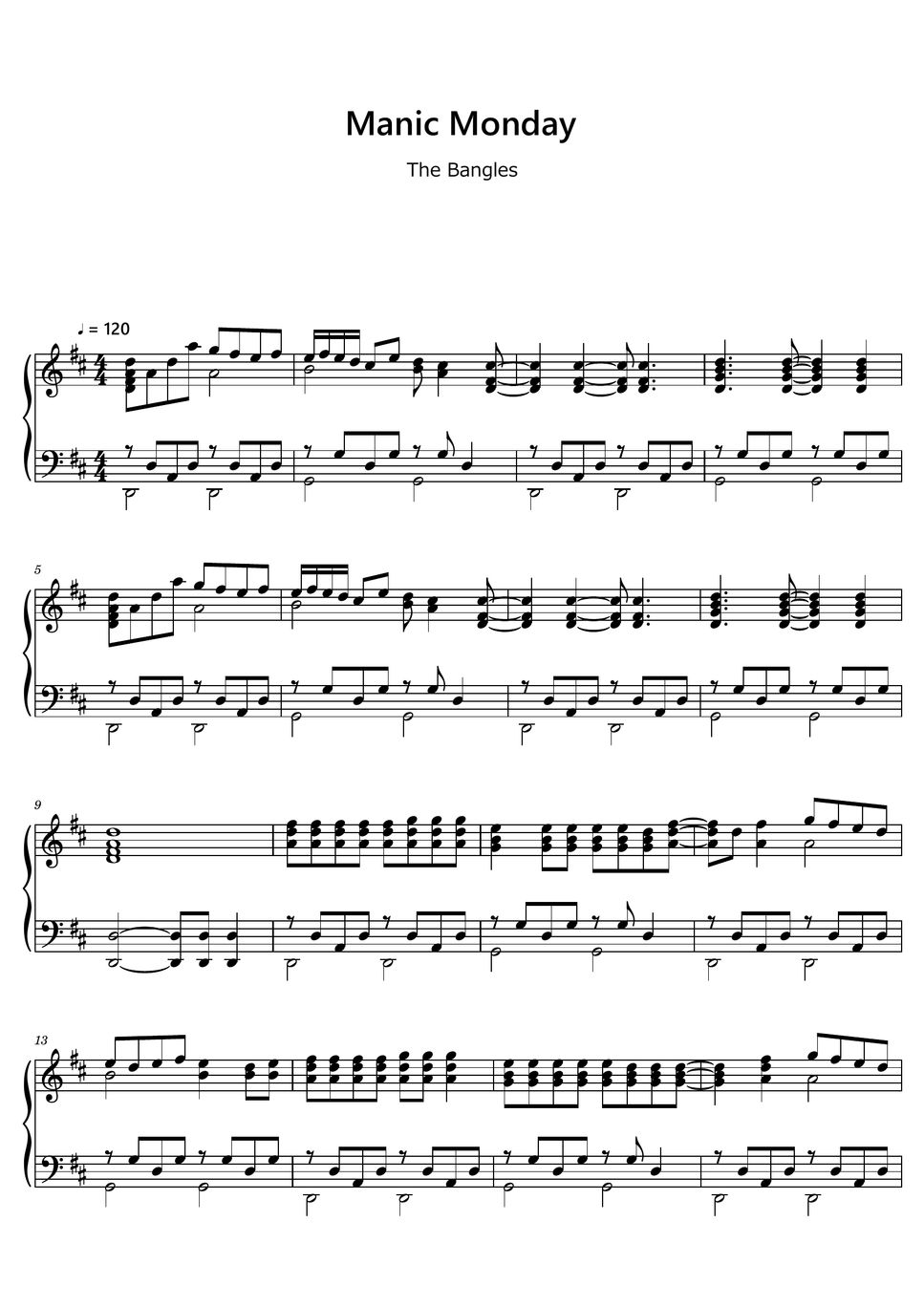 The Bangles Manic Monday (Sheet Music, MIDI,) Sheets by sayu