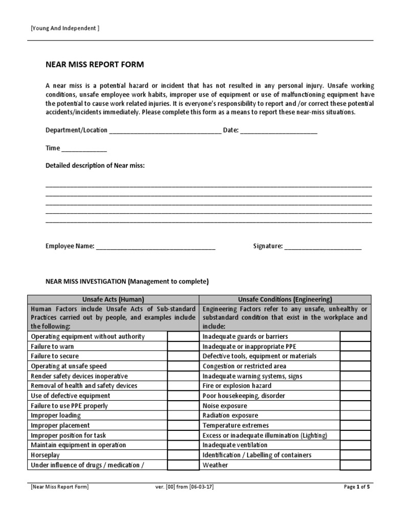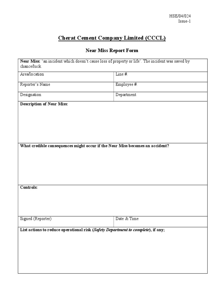 Near Miss Report Form PDF