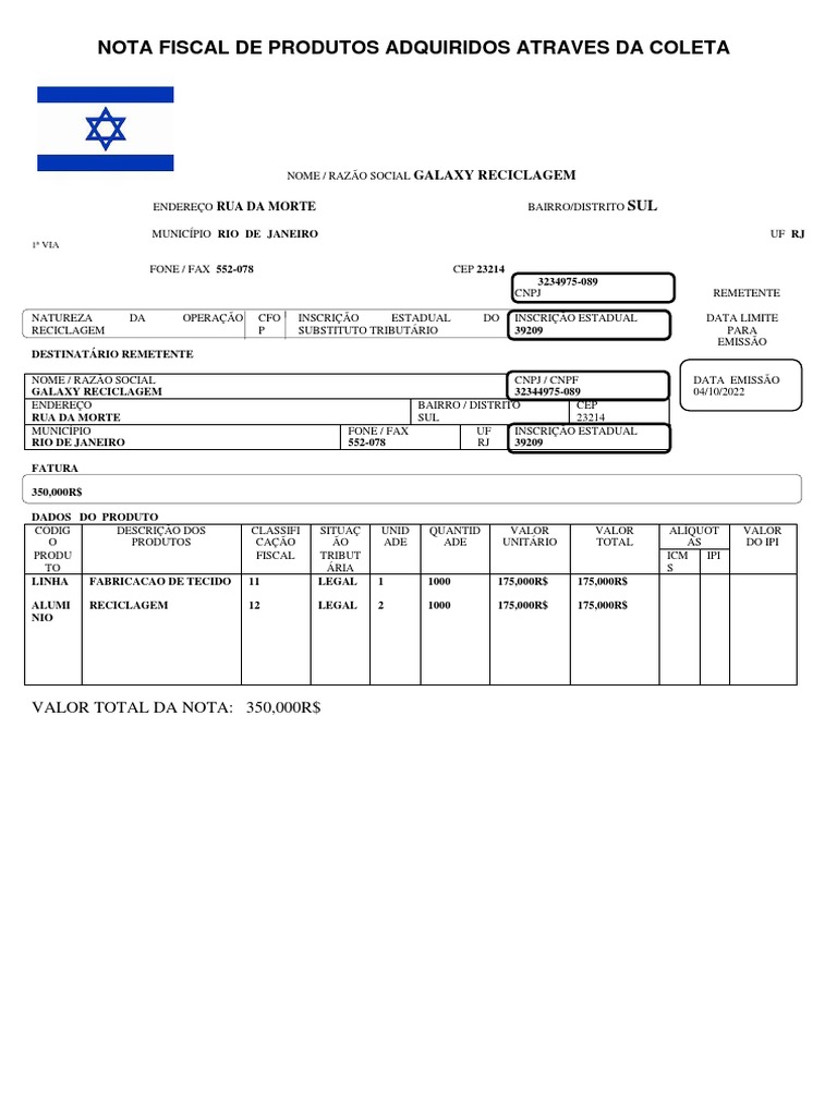 Exemplos de nota fiscal para preencher