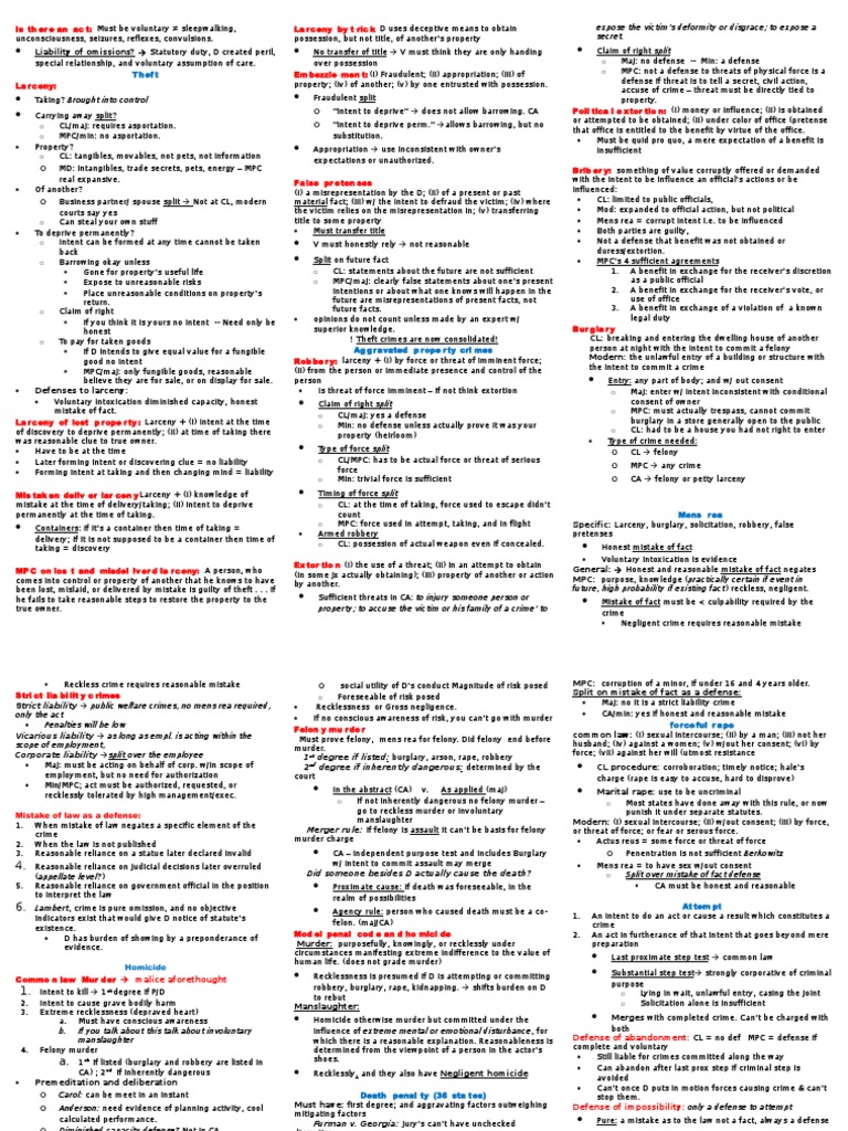 CRIM CASE Cheat Sheet Summary Criminal Law CRIMINAL LAW CASE CHEAT