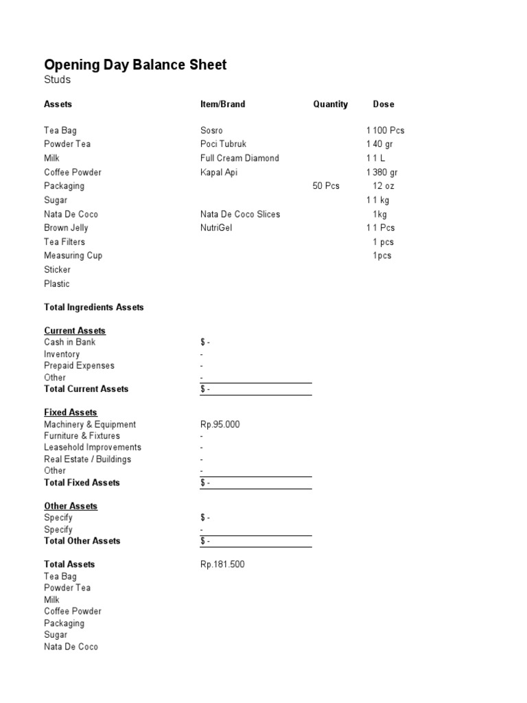 Opening Day Balance Sheet Fill and Sign Printable Template Online