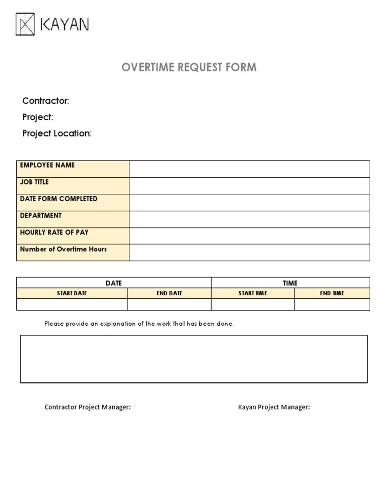 Before tracking extra hours, most firms ask employees to submit an overtime request form.