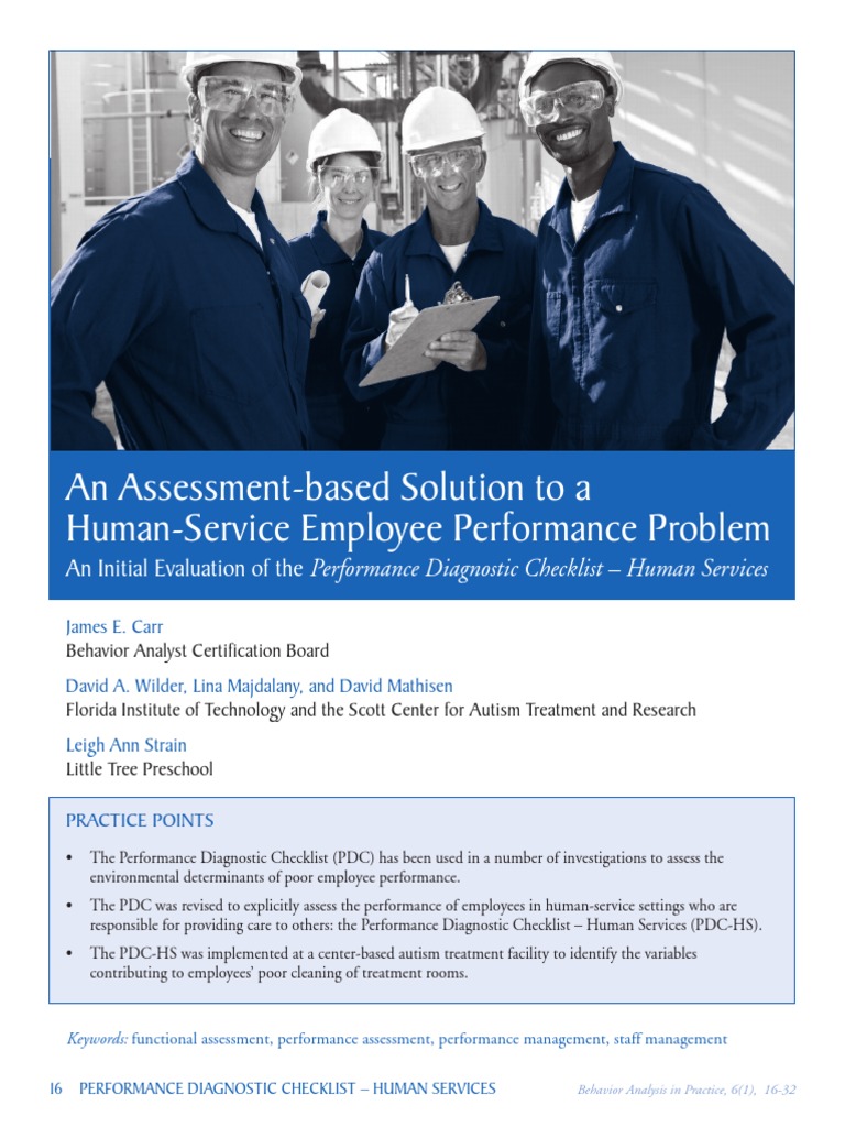 Carr Et Al. (2013) Performance Diagnostic Checklist (PDCHS) PDF