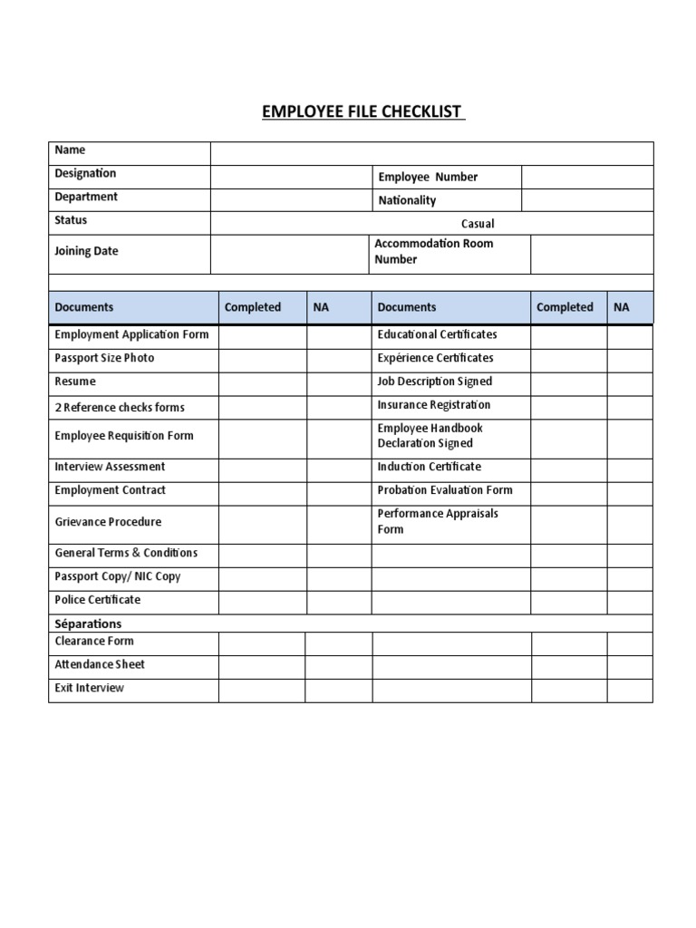 FREE 10+ Employee File Checklist SamplesPersonnel Doc Template