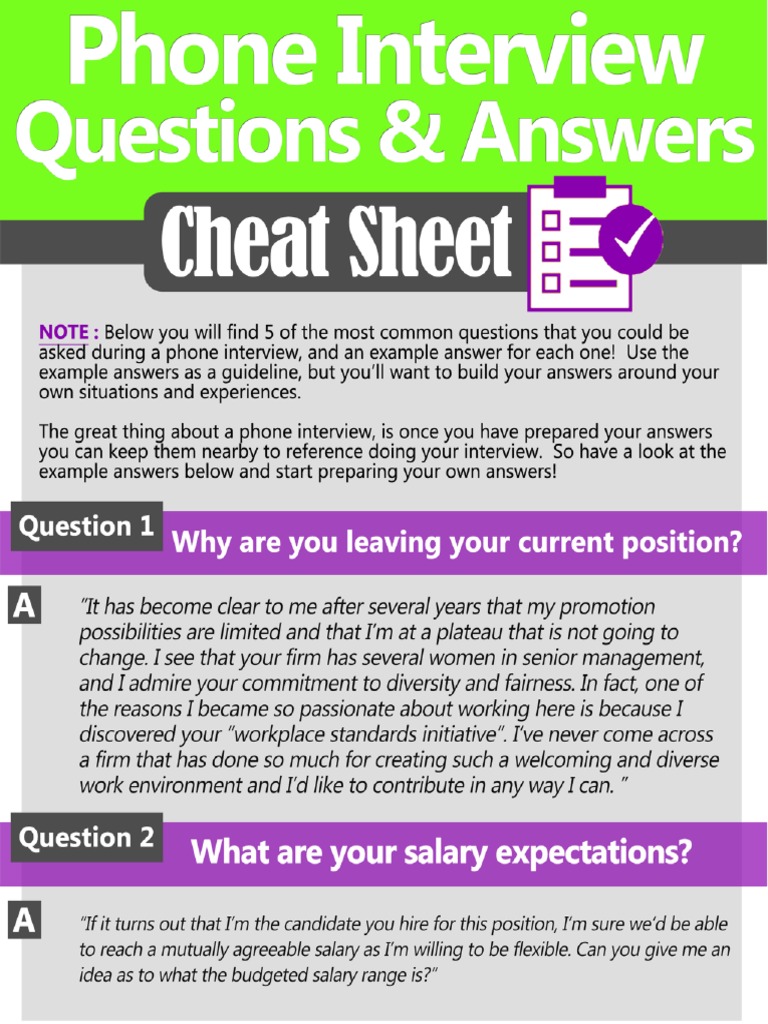 phone interview questions cheat sheet Interview questions phone tips