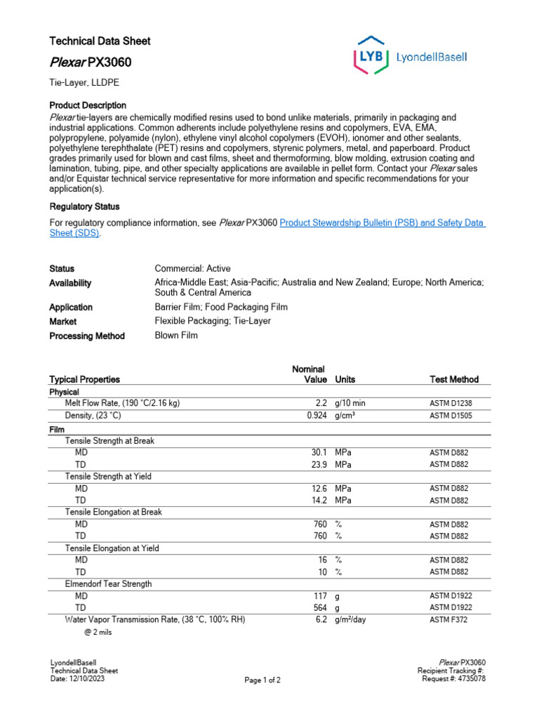 Technical Data Sheet PDF Polyethylene Chemical Substances
