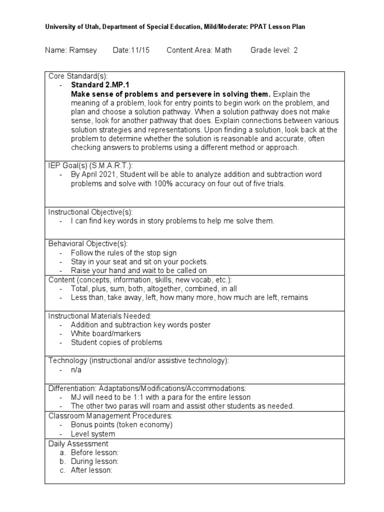 Planning the lesson this step allows you to demonstrate your ability to develop an. The library of examples is a collection of actual written responses submitted by ppat test. In the context of the ppat® assessment, this lesson plan format is a template provided for. Develop a lesson plan that you will use with your students in this task. Helps you develop meaningful daily lessons to best meet student. By the end of this course, you will be able to create thorough lesson plans which are.