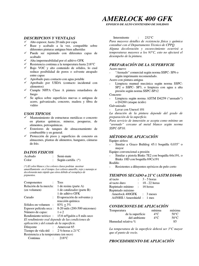 Product information the type of epd is cradle to gate with options (epd type b. Amerlock 400 is available in a variety of colors, including aluminum, and therefore does not require a topcoat. As a maintenance coating, amerlock 400 protects. When applying amerlock 400 to sur faces between 122˚f and 250˚f, thin 1⁄2. *amerlock 400 may be applied to surfaces.
