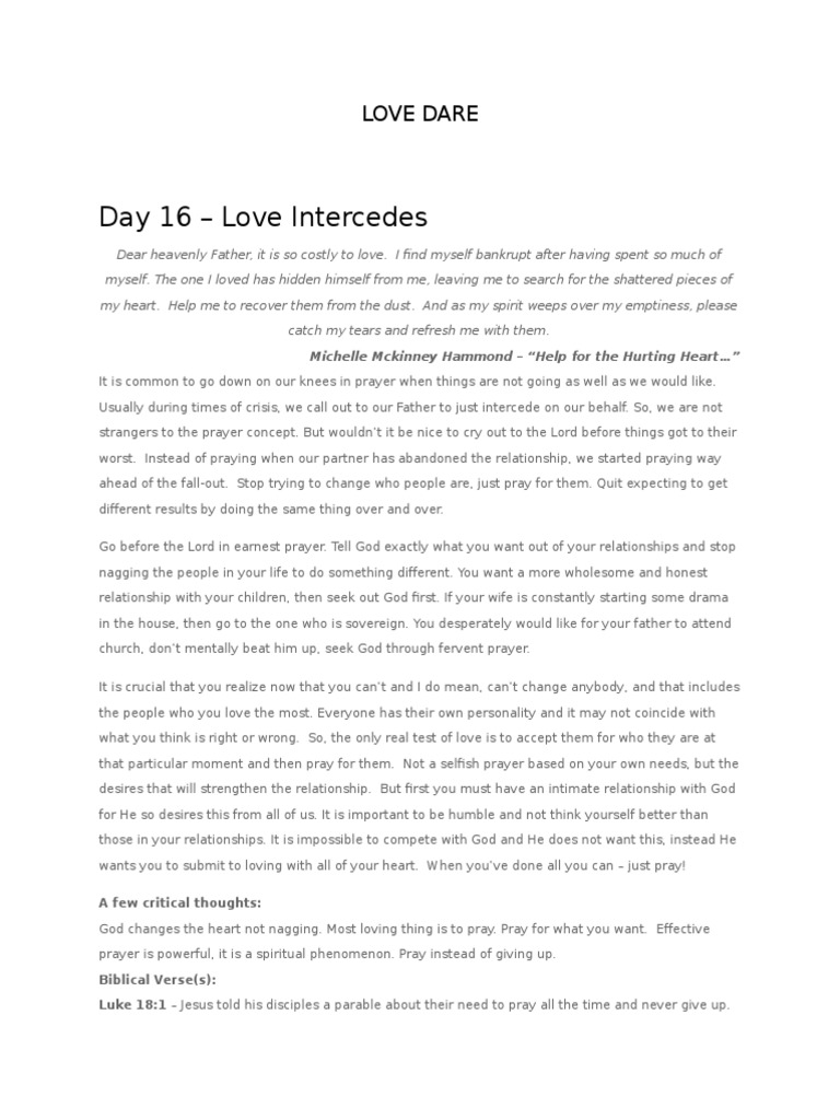 The Love Dare List Is A Printable Version Of The Book That You Can Download And Use As A Guide.