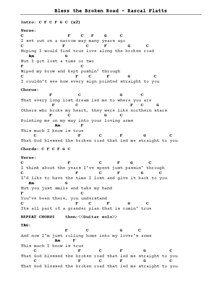 Get bless the broken road sheet music by rascal flatts as a digital notation file for piano/keyboard in (transposable). Share, download and print free sheet music of bless the broken road rascal flatts for piano, guitar, flute and more with the world's largest. Rascal flatts has released five studio albums and a live compilation to date, all on lyric street.