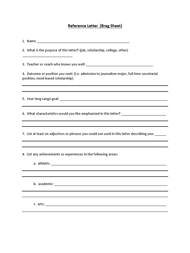 Bragsheet.ai creates everything you need to request a great reference letter or letter of recommendation: Complete this form to help your teacher write a letter of recommendation on your behalf. A polite email message to. Keep in mind, the more specific the details you can.