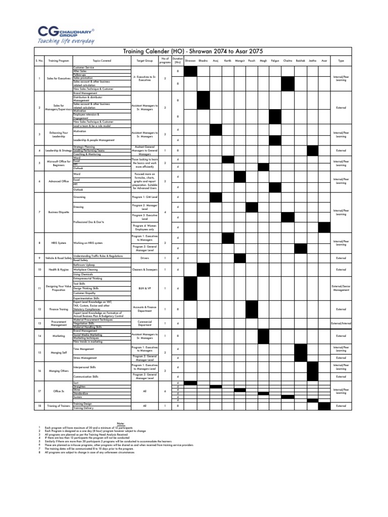 Training Calendar PDF
