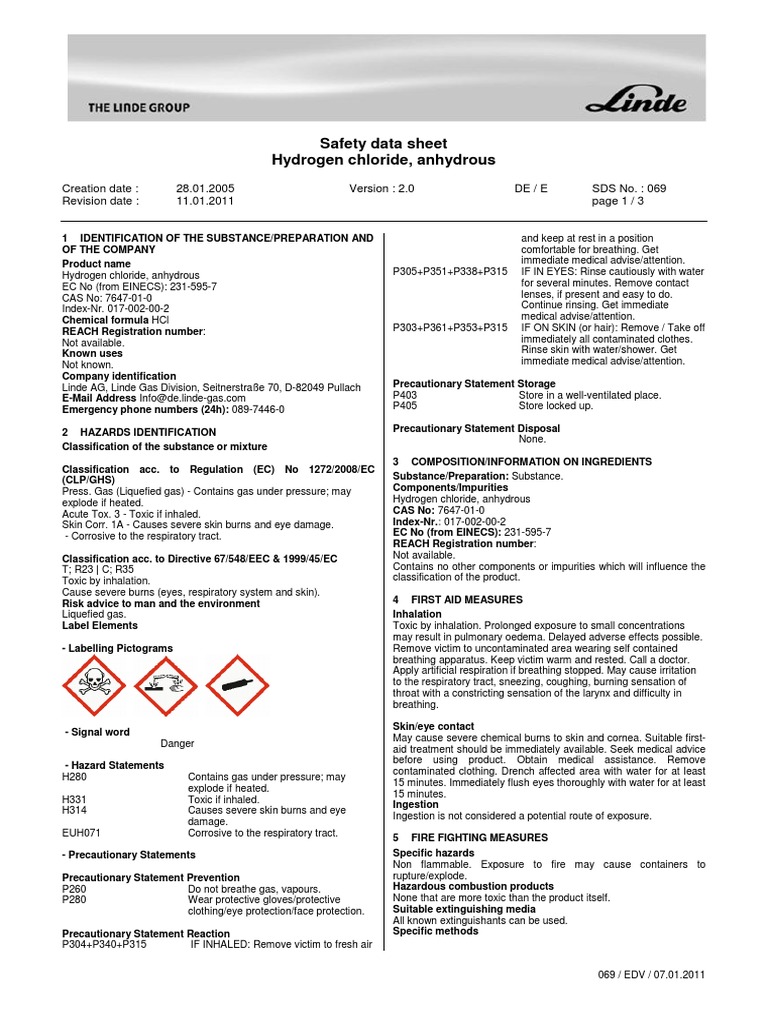 Safety Data Sheet Hydrogen Chloride, Anhydrous PDF Valve Water
