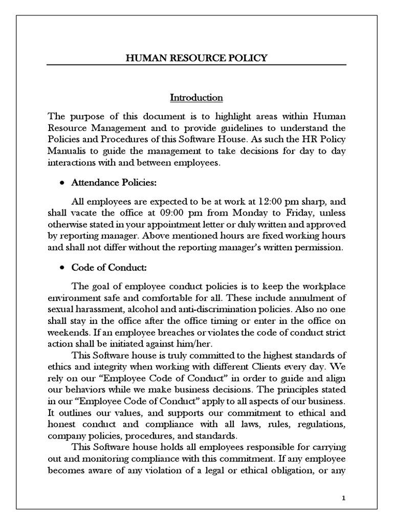 HR Policy Software House PDF Employment Labor