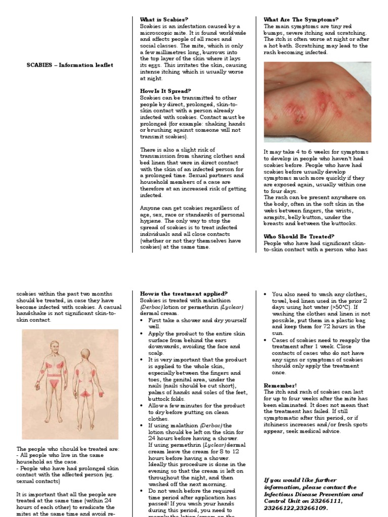 Scabies Information Leaflet 2018 PDF Diseases And Disorders