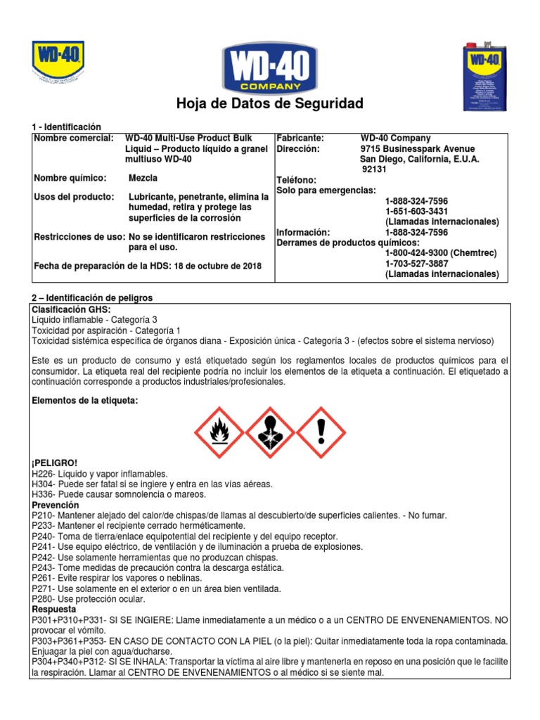 SDS WD 40 Multi Use Product Bulk Liquid Spanish LATAM PDF