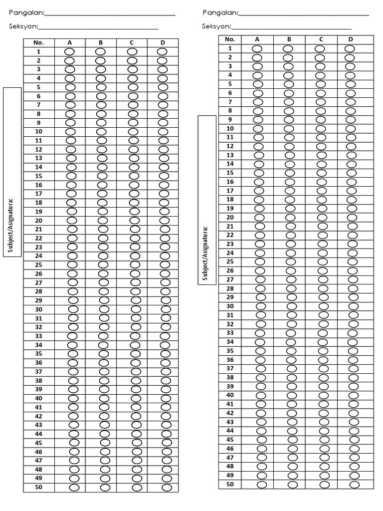 Answer Sheet SHADING PDF