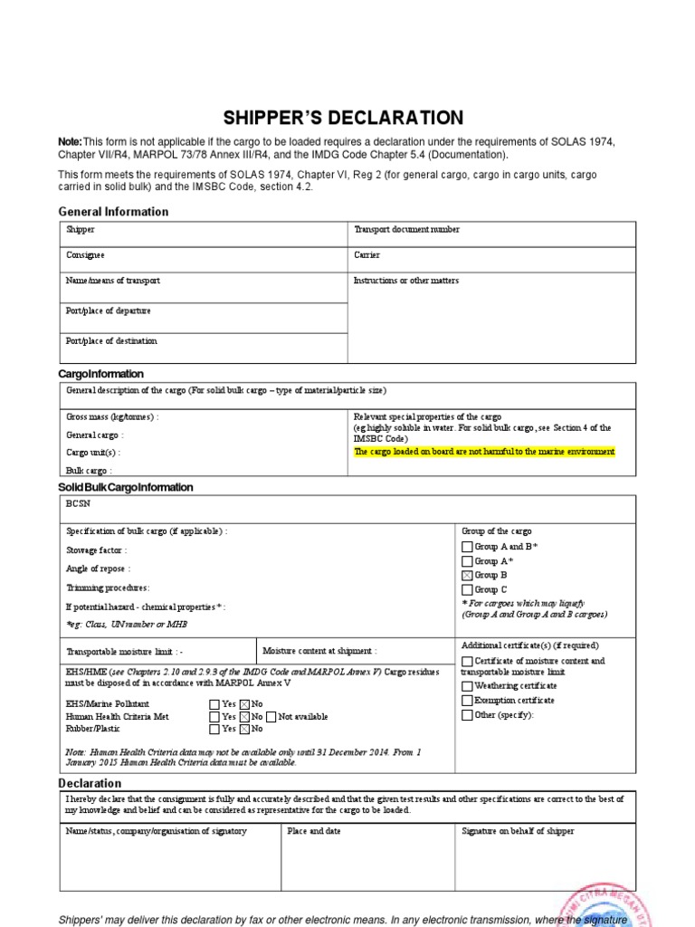 Shipper Declaration Must Fill Online, Printable, Fillable, Blank