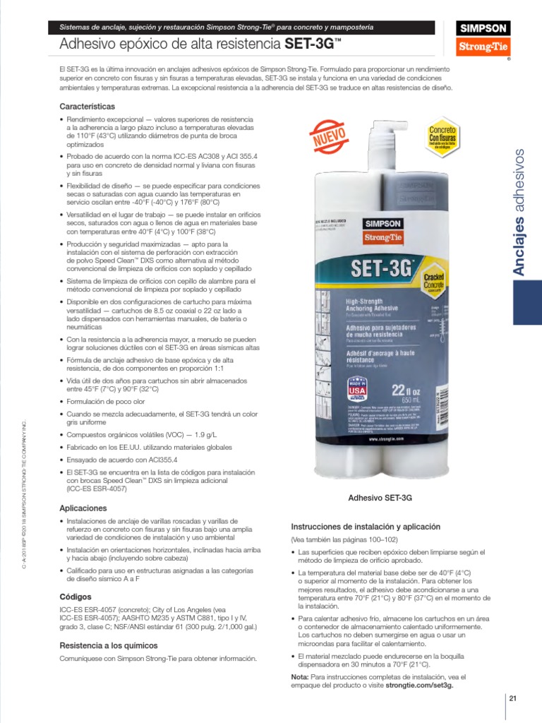 Simpson StrongTie Anchoring Systems Adhesive Anchors Epoxy