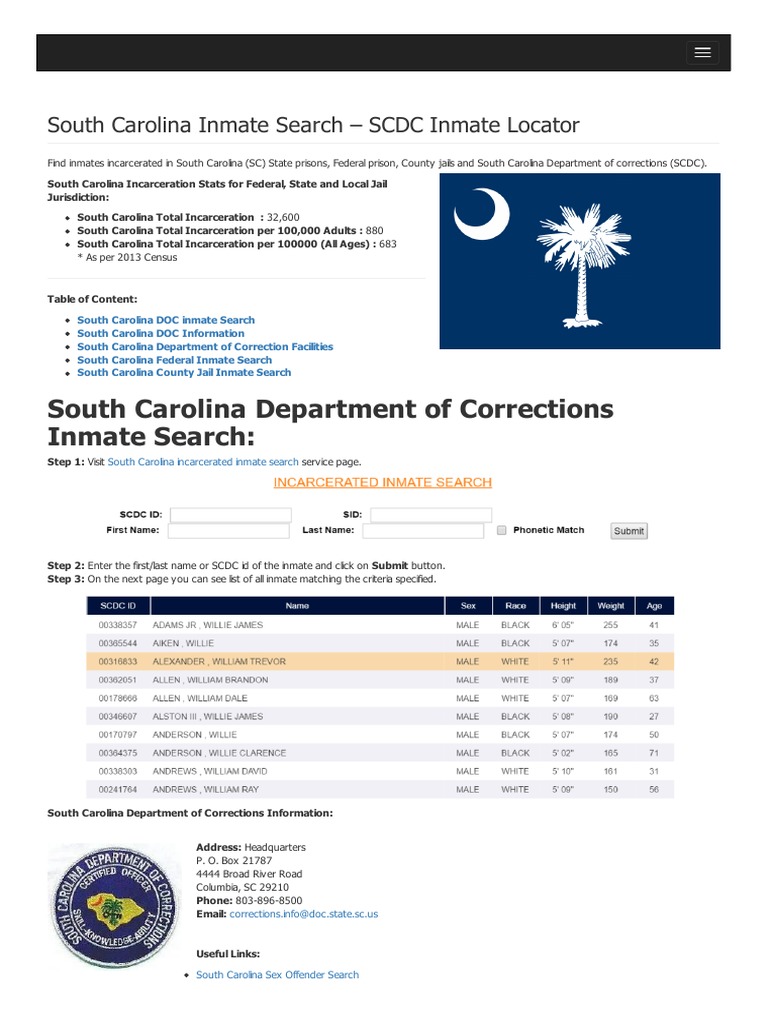 South Carolina Inmate Search SC Department of Corrections Inmate Locator